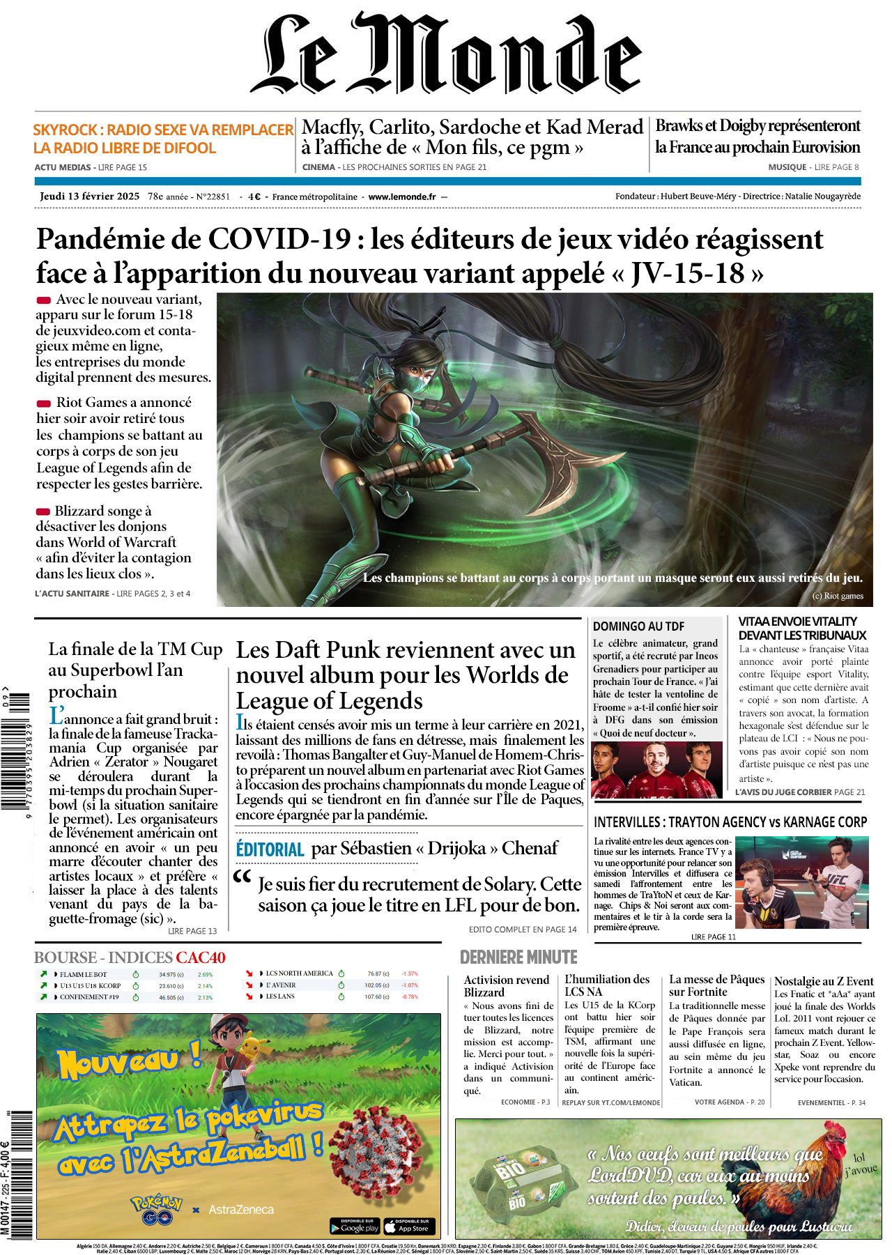 J'avais pas eu de news de mon cousin du turfu depuis pas loin de trois ans mais ce matin il m'a recontacté et m'a envoyé la Une du Monde du 13 février 2025. Trop sympa.