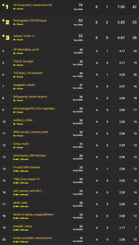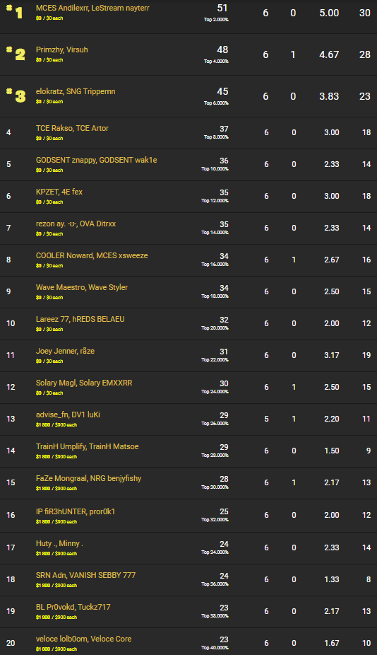 Retrouvez tous les résultats et le classement du Chapitre 2 saison 2 des Fortnite Champion Series.