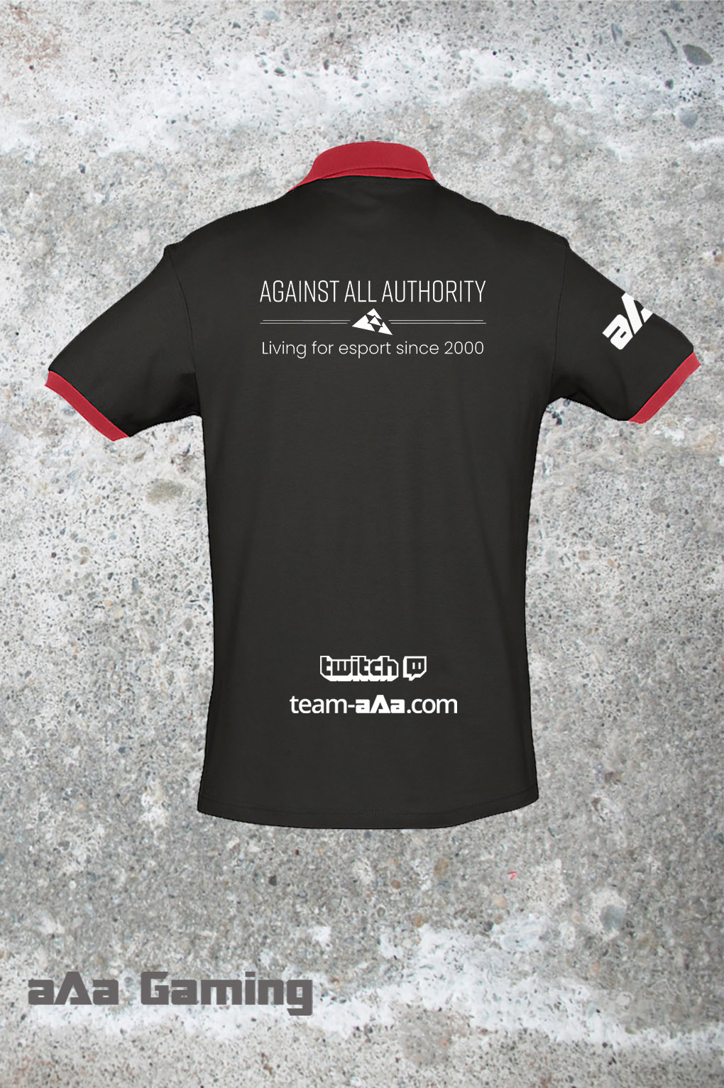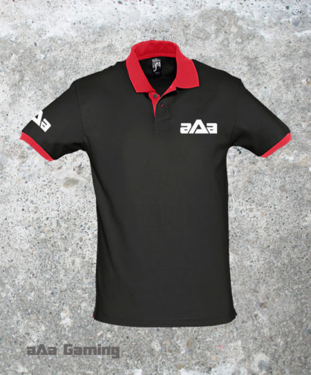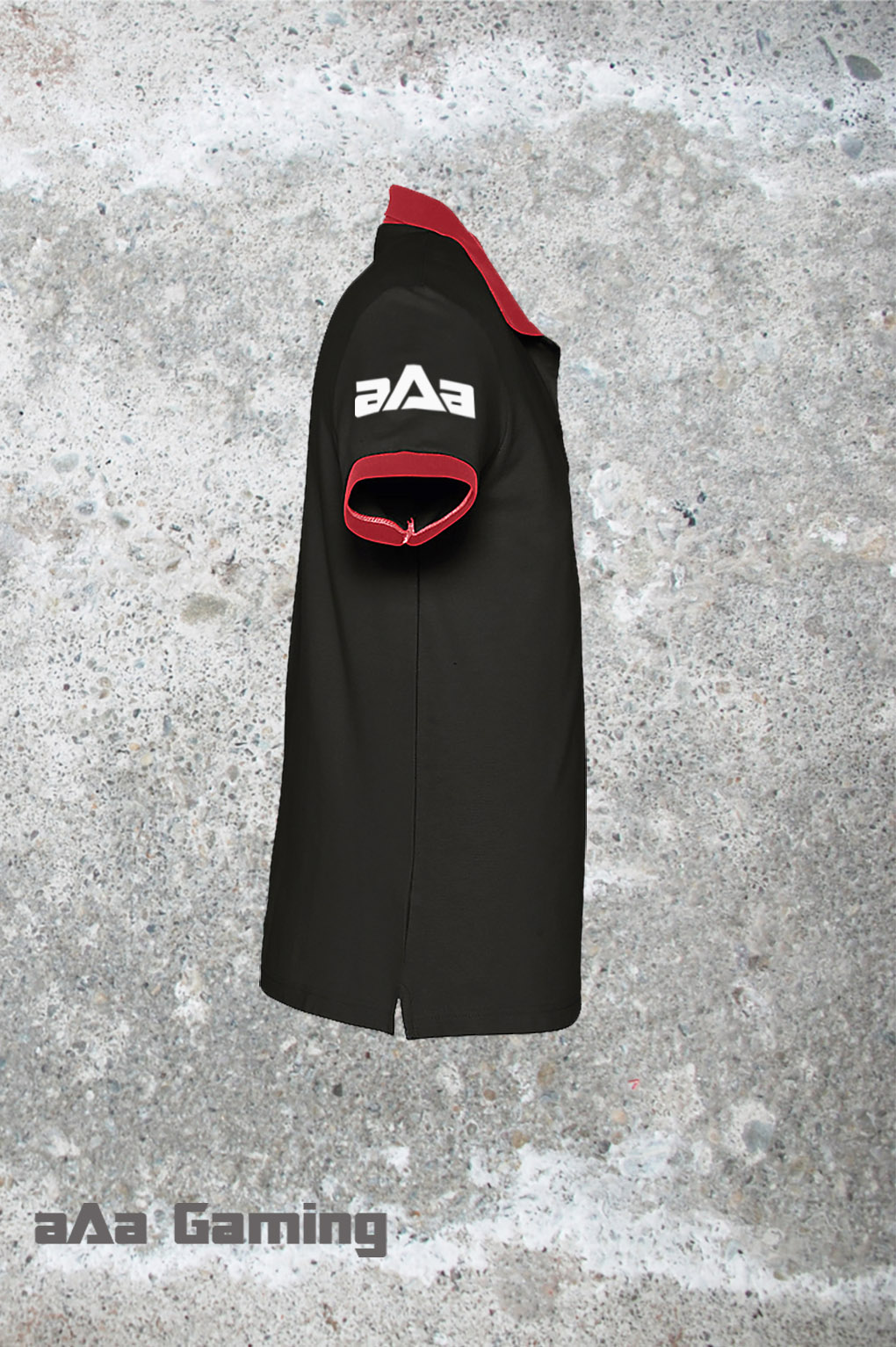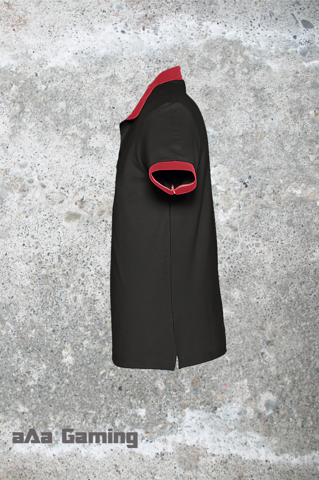 Polo manche courte noir avec col et bas de manches contrastés rouge