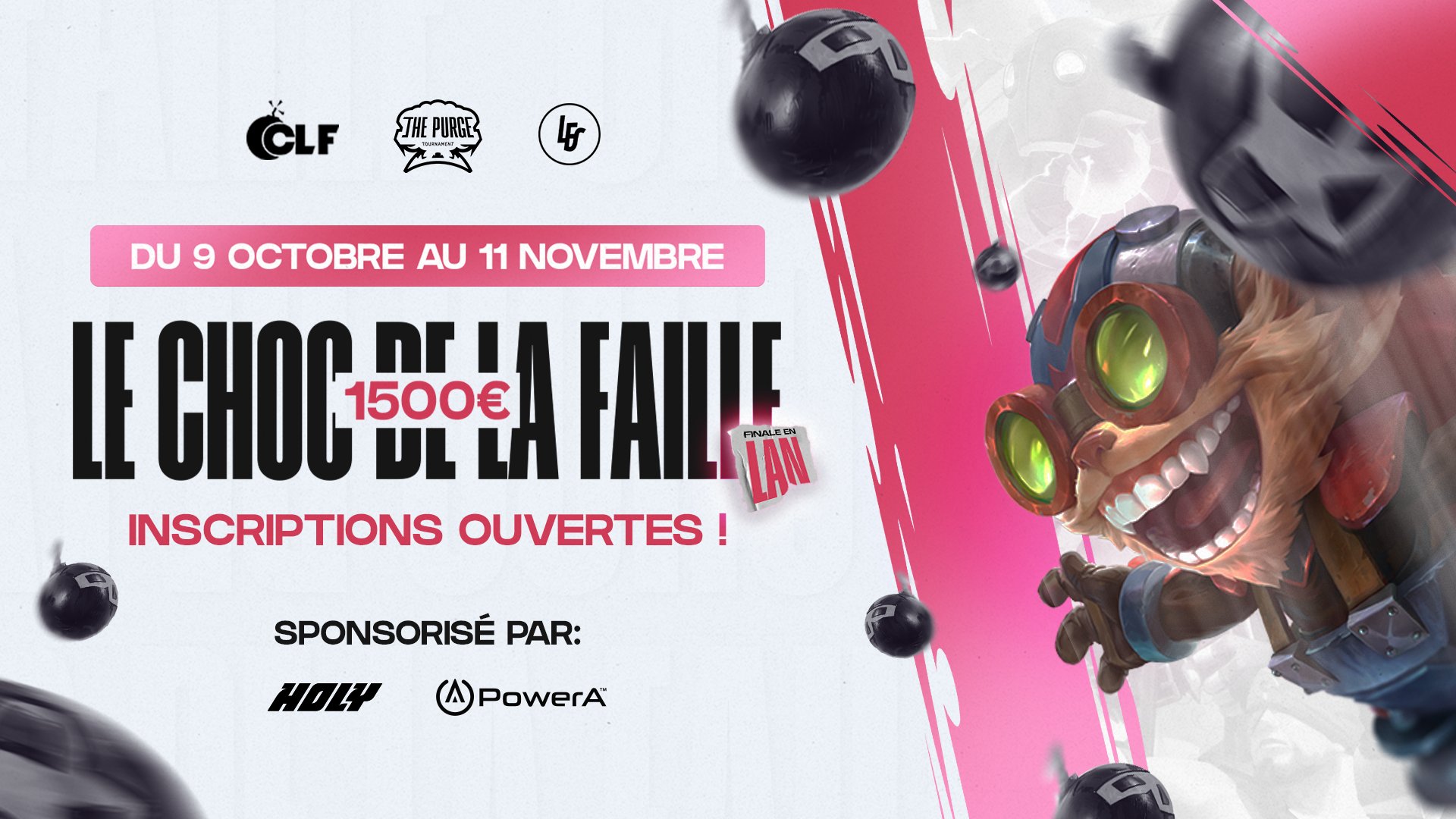 Après les succès des deux premières éditions, notre partenaire League of Legends Wild Rift Communauté FR et The Purge Tournament lancent officiellement la saison 3 du CHOC DE LA FAILLE. Le tournoi a lieu 09 Octobre au 11 Novembre et les inscriptions sont d'ores et déjà ouvertes.