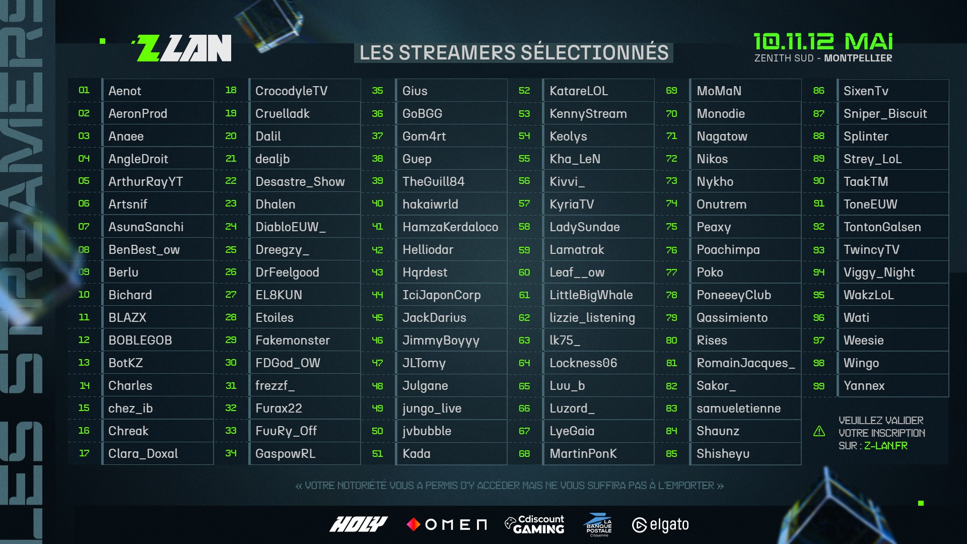 Au cours de ces dernières heures, ZeratoR a dévoilé liste des streamers et des 32 trios sélectionnés pour la Z LAN 2024. Comme précisé par les organisateurs de l'événement, si vous vous étiez inscrits et que vous ne vous trouvez pas dans cette liste, vous pouvez trouvez votre position dans la liste d'attente dans votre espace joueur sur le site de la Z LAN 2024.