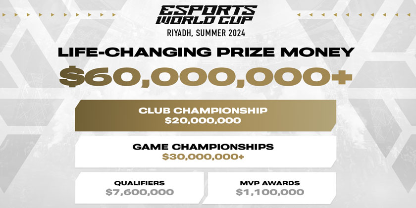 L'Esports World Cup Foundation a annoncé que le cashprize total de la première édition de l'Esports World Cup qui se déroulera cet été à Riyad, en Arabie saoudite, sera de plus de 60 millions de dollars. Ce montant établit un nouveau record, surpassant les 45 millions de dollars offerts par Gamers8 : The Land of Heroes en 2023.