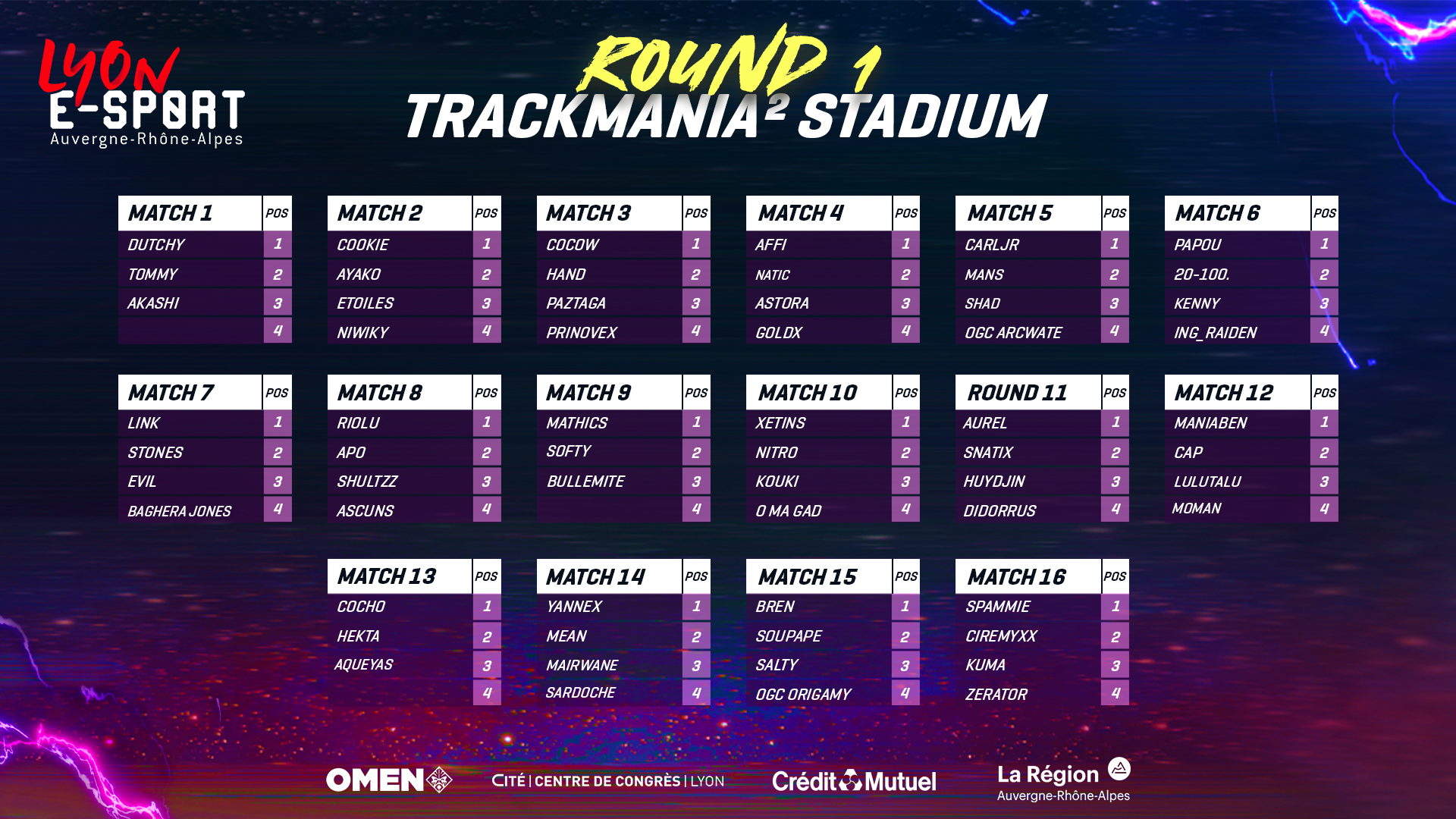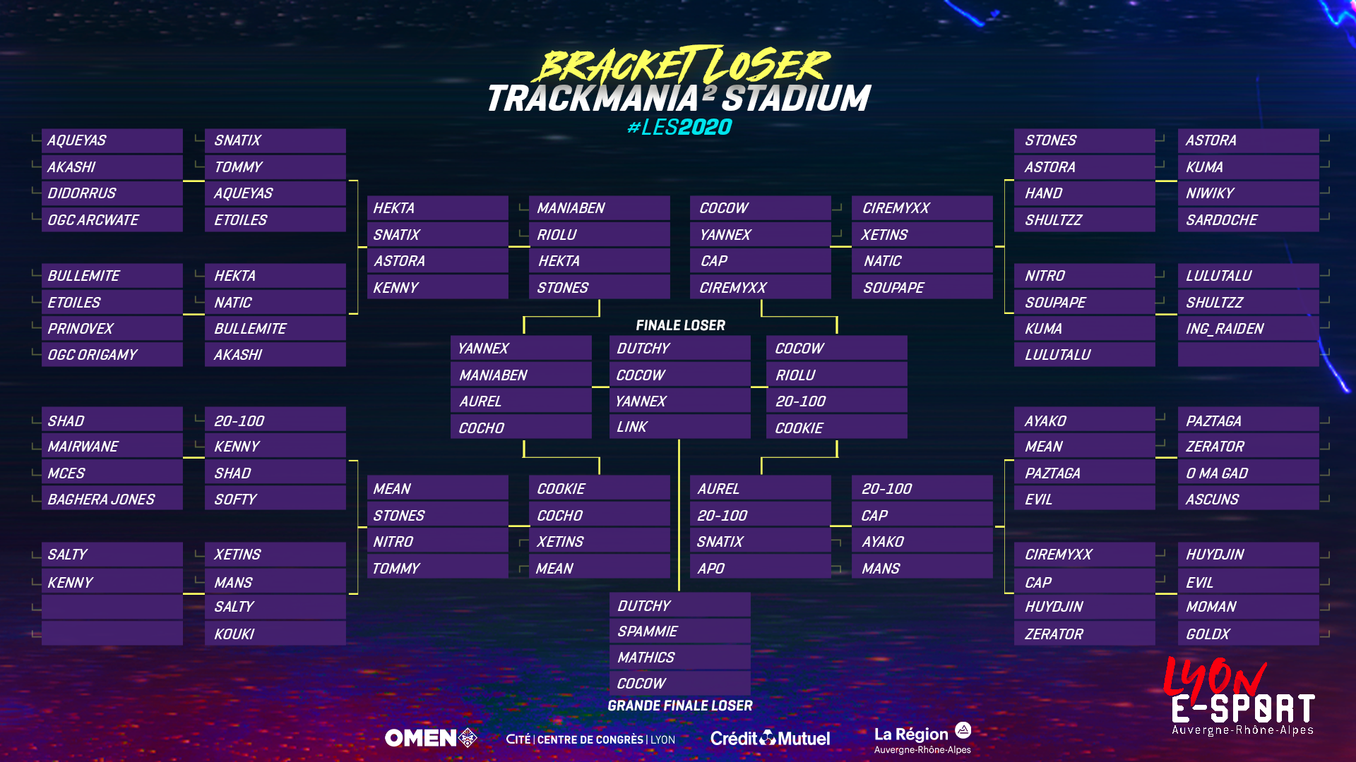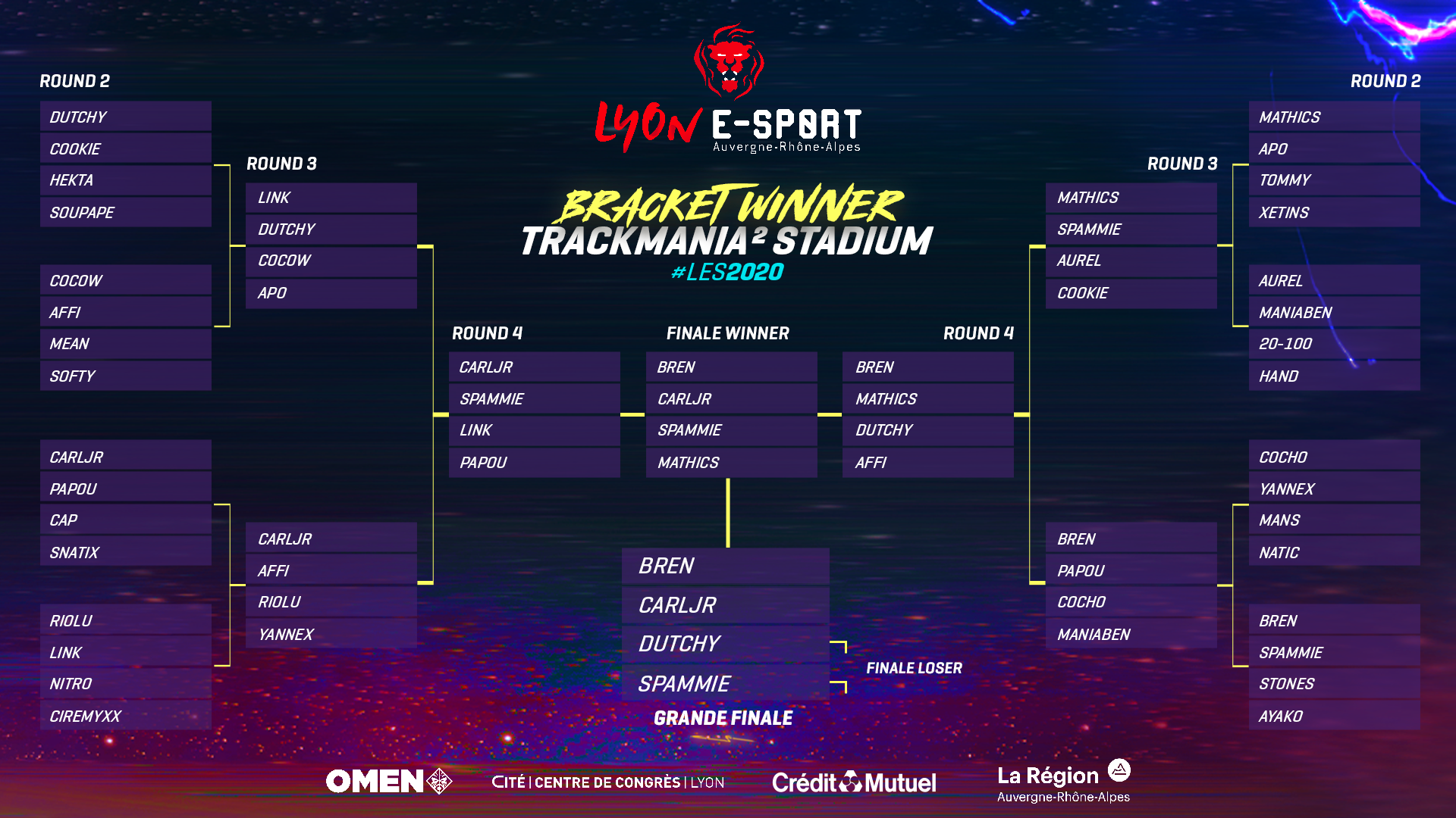 Ce week-end, pour la première fois, nous allons assister à un tournoi sur TrackMania à la Lyon e-Sport. 64 joueurs sont incrits dont des gros noms de la scène compétitive comme CarlJr, Papou, Aurel, Spam ou Riolu (qui disputeront les playoffs de la TMGL Winter lors de la soirée d'ouverture). On retrouve aussi plusieurs streamers à l'image de Zerator, Sardoche, Etoiles ou encore Moman.