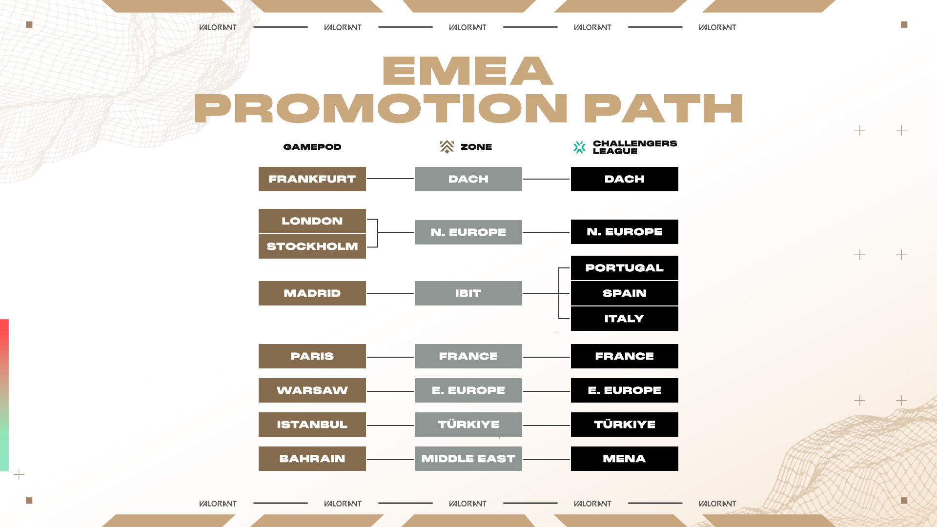 Si elle n'ouvre pas encore dans la phase É9A1, vous pourrez quand même remporter une promotion pour y accéder dans la suivante. Afin d'étoffer les rangs de la division d'Invitation, Riot Games y promouvra dans l'É8A3 non seulement les vainqueurs des play-offs, mais aussi toute équipe qui arrivera dans le top 32 du classement de sa division Concurrent après la fin du tournoi. Et en plus, les deux meilleures équipes de la division Concurrent de chaque zone auront une chance d'entrer dans leur ligue Challengers.