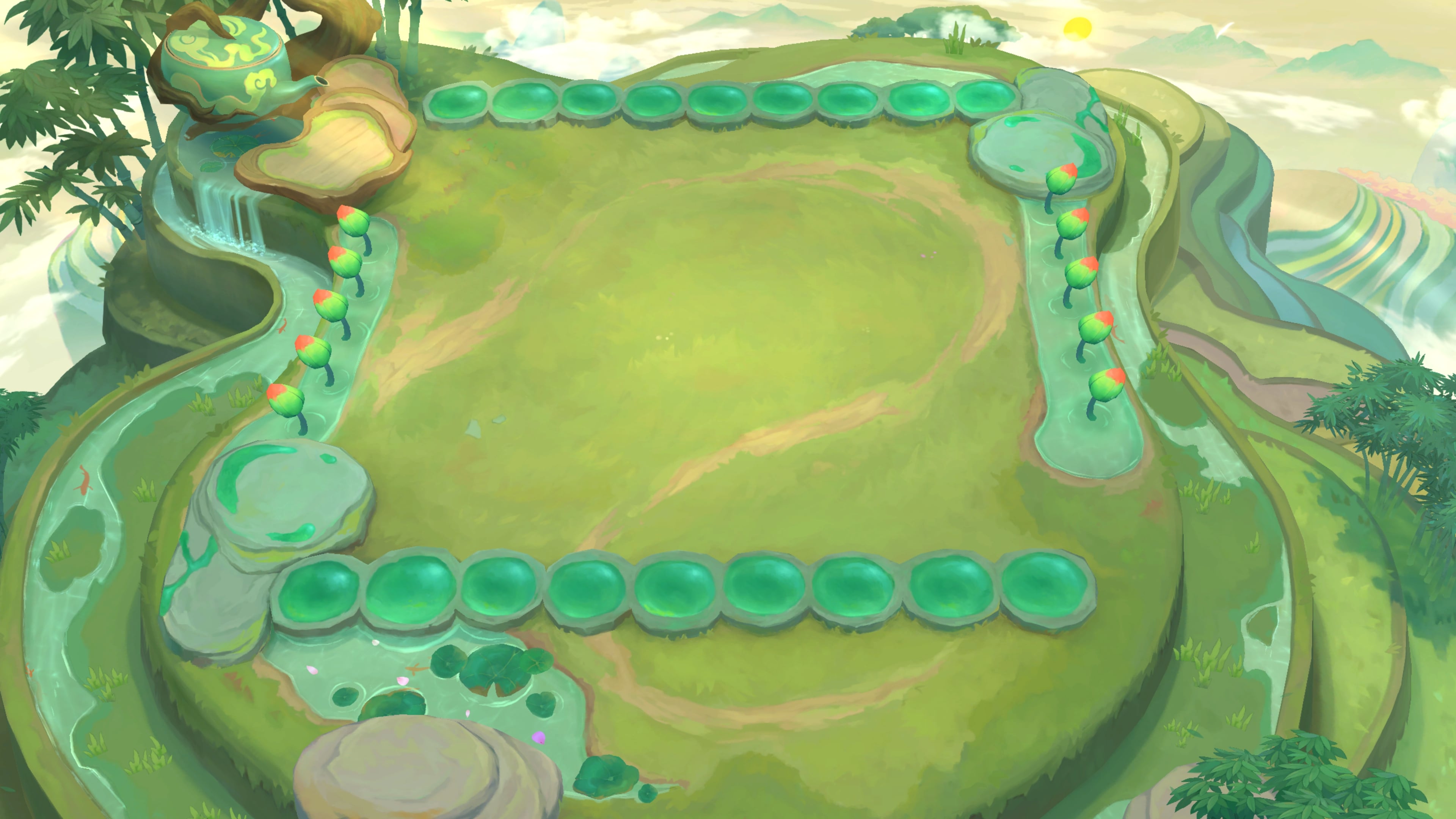 Notre toute nouvelle arène fantastique vous mène vers un paisible étang de carpes koïs. Vous pourrez souffler un peu en début de partie, tandis que vous accumulerez des intérêts sous forme de grenouilles. C'est si apaisant...